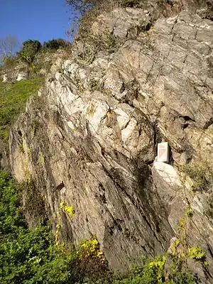 The Mazerolles Schists are aluminous micaschists with interbedded quartzitic layers. They derive from pelites and siltstones and are probably Cambrian in age.