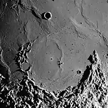 At the top of the Moon’s stratigraphy is the Copernican unit consisting of craters with a ray system. Below this is the Eratosthenian unit, defined by craters with established impact crater morphology, but lacking the ray system of the Copernican. These two units are present in smaller spots on the lunar surface. Further down the stratigraphy are the Mare units (previously known as the Procellarian unit), and the Imbrian unit which is related to ejecta and tectonics from the Imbrium basin. The bottom of the lunar stratigraphy is the pre-Nectarian unit, which consists of old crater plains. All of these are also found on Mercury in similar arrangements.