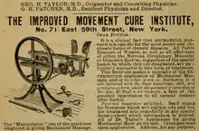 During 1858–1859, Taylor travelled to Herman Sätherberg's Institute of Kinesipathy in Stockholm to continue his studies.[3] When he returned home he founded the Institute of the Swedish Movement Cure in New York City and his brother joined his practice. In 1862, Olivia Langdon was treated at the institute.[3] He also established the Improved Movement Cure Institute in New York City.[4]