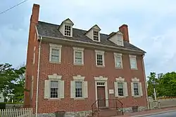This historic property is a 2+1⁄2-story, brick, Georgian-style dwelling,[8] which was erected on a rubble fieldstone foundation.[4] It features double chimneys and a steep gable roof, and has Federal-style details.[6]