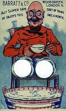 George did not follow the family trade. After leaving school he entered a lawyer's office where he remained for some years.[6] After his marriage he went into short-lived business as a pastry cook with his brother James. He then started a sugar confectionery business employing one sugar boiler at 32 Shepherdess Walk, Hoxton. The enterprise was successful: it grew rapidly and neighbouring properties were bought up to allow for the expansion. Barratt himself travelled, in his pony and trap, to deliver and promote his products in and around London. Then, his eldest son George (1852-1928), when he was about 17, took over these journeys, and Barratt senior worked large parts of the country for the next 20 years. Part of the company's success was attributable to a product sold as 'stickjaw' toffee – said to have been made accidentally – that was very popular with children.[7]