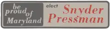 A 1974 Maryland gubernatorial campaign bumper sticker for the short-lived Snyder–Pressman ticket