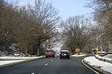 The northern sections of the Parkway were mostly completed in the 1950s-1960s.[39] The portion of the parkway from Glebe Road to I-495, was built primarily to provide access for workers at the new Central Intelligence Agency headquarters in Langley, Virginia, in 1959.[44] The portion of the parkway just north of the Key Bridge was considered a model of modern highway design, and it was featured in many scholarly papers, engineering journals, and textbooks of the day.[45] The Capper-Cramton Act received significant amendments in 1946, 1952, and 1958, both funding and terminating significant portions of the unbuilt parkway.[38] The most significant changes came when Congress declined to fund construction of the segments from Fort Washington to the District of Columbia, from I-495 in Virginia to the Great Falls, and from MacArthur Boulevard/Carderock north to the Great Falls. Significant opposition to these segments emerged from the Izaak Walton League, the Wilderness Society, and other groups, which argued that the environmental damage caused by these segments would be too severe to justify their construction.[46]