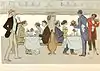 He chose horse racing[i. 3] as a way to enter high society.[16] In June 1900 he self-published his new album Le Turf of caricatures of many prominent Parisian socialites, including Marquess Boni de Castellane, Prince Trubetskoy, Count Clermont-Tonnerre, Baron Alphonse, Gustave de Rothschild, and Polaire.[16] The album's success made him famous overnight.[17] In October 1900 he published the album Paris-Trouville with equal success. Goursat published nine other albums before 1913.[18]