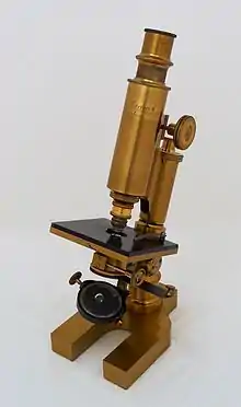 Oberhaeuser continued to develop stands to suit the requirements of researchers and introduced the pattern which was to shape the image of the microscope for over a century in 1854; the Oberhaeuser horseshoe foot stand.[10][4]