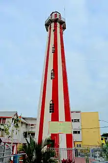 The Georgetown Lighthouse was first built by the Dutch in 1817 and then rebuilt in 1830 to help guide ships into the Demerara River from the Atlantic Ocean. The 31 m (103 feet) high octagonal structure is a famous Georgetown, Guyana landmark with its distinct vertical red and white stripes. The Lighthouse, located on Water Street, is maintained by the National Trust of Guyana.[2]