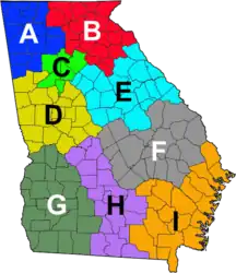 - Troop G - Includes the following counties: Baker, Calhoun, Chattahoochee, Clay, Colquitt, Decatur, Dougherty, Early, Grady, Lee, Marion, Miller, Mitchell, Quitman, Randolph, Schley, Seminole, Stewart, Sumter, Terrell, Thomas, Webster, Worth
