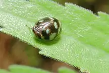 The genus is closely related to Hemisphaerius but differs in having longer frons (forehead) and legs. The frons also lacks a median keel (carina) or tubercles on the frons, pronotum or mesonotum. The rounded tegmen which resembles the elytra of beetles are often patterned. Although some species show variations in pattern, many species can be recognized on the basis of the patterns.[1]