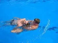 - 50 metres rescue pulling or pushing stroke with a partner in less than 1:30 minutes (both wearing clothes).