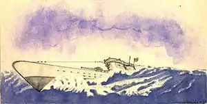 Kapitänleutnant Rathke painted this watercolor of U-352 while held as a POW.