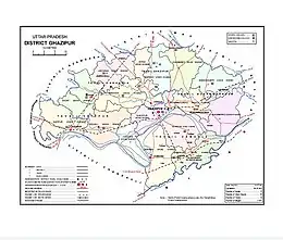 Map showing development blocks in Ghazipur District.