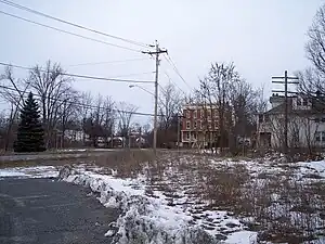 ![]() General location of former station. Note the former railroad hotel which is on the National Register of Historic Places. | ||||||||||||||||