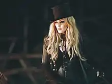 Madonna in the music video of the song, wearing the Chrome Hearts designed greatcoat with top hat, portraying a Stevie Nicks-like character