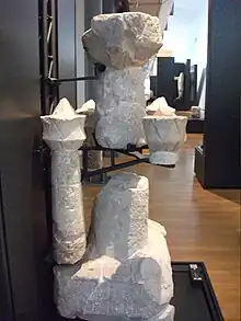 After four excavation campaigns carried out between 1975 and 1979, the roughly five thousand pieces recovered – including fifteen heads and twenty two torsos – were stored for thirty years in the repositories of the National Archaeological Museum of Cagliari, while a few of the most important pieces were exhibited in the museum itself.[3] Along with the statues, other sculptures recovered at the site include large models of nuraghe buildings and several baetylus sacred stones of the "oragiana" type, used by Nuragic Sardinians in the making of "giants' graves".[lower-alpha 1]