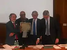 Gildo De Stefano receives the Campania Felix International Journalism Award from the President of the Jury