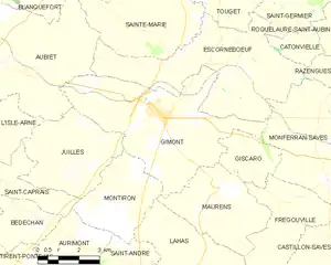 Gimont (French pronunciation: [ʒimɔ̃]; Occitan pronunciation: [dʒiˈmunt]) is a commune in the Gers department in southwestern France. It is about 40 km (25 mi) west of Toulouse. It is the seat (capital) of the canton of Gimone-Arrats.