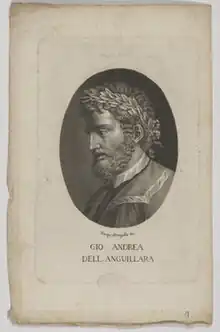 Giovanni Andrea dell'Anguillara (c. 1517 – c. 1570) was an Italian poet. His verse translation of Ovid's Metamorphoses (the complete version was published in 1561) was often reprinted and has been highly praised by italian critics; a partial translation of Virgil's Aeneid enjoyed less success. Anguillara also wrote the comedy Anfitrione, and the tragedy Edippo, based on Seneca's Oedipus and on Sophocles' Oedipus Rex.[1]