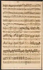 Of Pandolfi's works, his two collections of sonatas for violin and harpsichord (Op. 3 and Op. 4) published 1660 and his trio sonatas (Sonate Cioè Balletti) published 1669 have survived; they are at the Civic Museum of Bologna. No trace is known of Pandolfi's Opp. 1 and 2.[4] The violinist Andrew Manze believes the 1669 sonatas may be the work of another composer of a similar name,[3] although the music historian David McCormick argues for their common authorship. He points out that Pandolfi is named on the title page of the 1669 sonatas (although without the additional surname Mealli) as a musician of Messina, and that the 1669 sonatas are named after court musicians of that city; one of them to the castrato Giovanni Marquett, whom Pandolfi was to murder a few years later.[5]