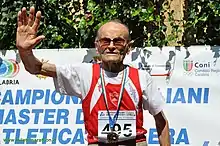 He was the first and only centenary athlete to have made a qualifying triple jump for his Masters category (M100, or those 100 years of age and older).[1] He was the indoor world record holder in the M100 60 metres at the time of his death.[2] He also held the indoor world record for the triple jump and long jump, and the outdoor world record for the triple jump[3] He has 56 Italian National Championships with 13 national records, still holds 9 world records and the European discus record.[4][5]
