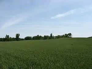 The type site for Glacial Kame is the Ridgeway Site near the village of Ridgeway in Hardin County, Ohio. The site was discovered in 1856 by workers building a railroad line nearby, who mined the kame for ballast; the supervisor's detailed report of the excavation has survived to the present day and is a premier resource for the culture.[1] Archaeologists specializing in Ohio became familiar with Glacial Kame sooner than with the state's other cultures; even as late as the 1930s, Glacial Kame sites were the only widely known ones other than some later sites on the Lake Erie shoreline and a few large Hopewellian geometric earthworks in the southern part of the state.[2]
