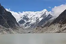 Pakistan has more than 7000 glaciers, which is more than anywhere else in the world, except for the polar regions. As of 2018, more than 3,000 glacial lakes had formed in Gilgit-Baltistan, with 30 identified by the UNDP as posing an imminent threat of glacial lake outburst flooding. In 2017, a "Scaling up of Glacial Lake Outburst Flood Risk Reduction in Northern Pakistan Project" was continued.[8] In 1929, a GLOF from the Chong Khumdan Glacier in the Karakoram caused flooding on the Indus River 1,200 km downstream (a maximum flood rise of 8.1 m at Attock).[9]