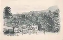 A new Killearn station was opened, nearer the village than the Blane Valley Railway station of the same name. The inevitable confusion for passengers was only partly reduced by renaming the station New Killearn and the Blane Valley station Old Killearn. The Blane Valley station was later named Dumgoyn Hill after a local beauty spot, and later again renamed Dumgoyne.[4]