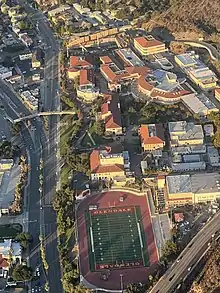 The campus now consists of 100 acres (40 ha) and 15 permanent buildings. It is located on the slopes of the San Rafael Hills overlooking the valleys in the Glendale area.