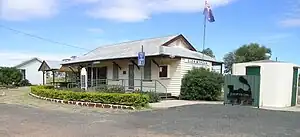 The "End of The Line" Museum is housed in the former Glenmorgan railway station in Sybil Street (27°14′58″S 149°40′37″E / 27.2494°S 149.6769°E). It has a collection of railway memorabilia.[15] There is a memorial to Colin and Joyce McKillop, who were original and life members of the Glenmorgan Restoration Committee which established the museum.[29] Free camping is available behind the museum.[30]