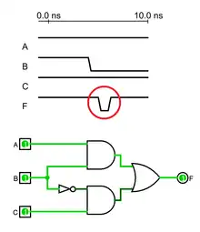 Glitch removal is the elimination of glitches—unnecessary signal transitions without functionality—from electronic circuits. Power dissipation of a gate occurs in two ways: static power dissipation and dynamic power dissipation. Glitch power comes under dynamic dissipation in the circuit and is directly proportional to switching activity. Glitch power dissipation is 20%–70% of total power dissipation and hence glitching should be eliminated for low power design.