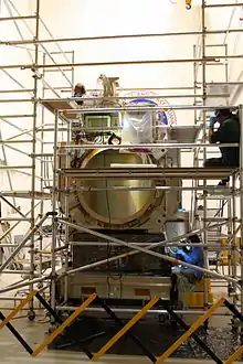 The project is managed by NASA's Goddard Space Flight Center, and consists of a GPM Core Observatory satellite assisted by a constellation of spacecraft from other agencies and missions.[2] The Core Observatory satellite measures the two and three dimensional structure of Earth's precipitation patterns and provides a new calibration standard for the rest of the satellite constellation. The GPM Core Observatory was assembled and tested at Goddard Space Flight Center, and launched from Tanegashima Space Center, Japan, on a Mitsubishi Heavy Industries H-IIA rocket. The launch occurred on February 28, 2014, at 3:37am JST on the first attempt.[3] Agencies in the United States, Japan, India and France (together with Eumetsat) operate the remaining satellites in the constellation for agency-specific goals, but also cooperatively provide data for GPM.[2]