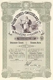 Globus was founded in 1907 in Zürich, and now has stores in all major Swiss cities. The chain sells mostly upscale goods, including clothing, cosmetics, jewelry and household supplies. The stores are noted for their extensive delicatessen section, called Globus Delicatessa, and their former mascot, Globi, the comic books about whom have been a fixture in the childhood of many Swiss.[4]