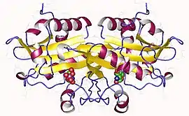- ↑ Vithani N, Bais V, Prakash B (June 2014). "GlmU (N-acetylglucosamine-1-phosphate uridyltransferase) bound to three magnesium ions and ATP at the active site". Acta Crystallographica Section F. 70 (Pt 6): 703–8. doi:10.1107/S2053230X14008279. PMC 4051520. PMID 24915076.