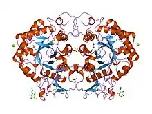 - ↑ Henrissat B, Bairoch A (June 1996). "Updating the sequence-based classification of glycosyl hydrolases". The Biochemical Journal. 316 ( Pt 2) (Pt 2): 695–6. doi:10.1042/bj3160695. PMC 1217404. PMID 8687420.