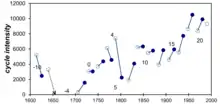 - ↑ Usoskin, I.; Mursula, K.; Arlt, R.; Kovaltsov, G. (2009). "A Solar Cycle Lost in 1793-1800: Early Sunspot Observations Resolve the Old Mystery". Astrophysical Journal Letters. 700 (2): L154–L157. arXiv:0907.0063. Bibcode:2009ApJ...700L.154U. doi:10.1088/0004-637X/700/2/L154. S2CID 14882350.