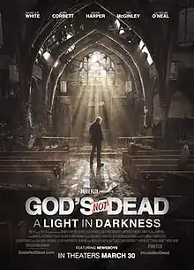 God's Not Dead: A Light in Darkness is a 2018 American Christian drama film written and directed by Michael Mason. It is a sequel to God's Not Dead 2: He's Surely Alive, and the third installment overall in the God's Not Dead film series. It stars David A. R. White, John Corbett, Shane Harper, Benjamin Onyango, Ted McGinley, Jennifer Taylor, Tatum O'Neal, Shwayze and Cissy Houston.[2]