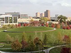 Gold Medal Park is a 7.5-acre (3.0 ha) park in the Downtown East neighborhood of Minneapolis, Minnesota, United States. Opened in May 2007, the park was designed by landscape architect Tom Oslund and is owned by the city of Minneapolis. It takes its inspiration from the Native American mounds that are found throughout Minnesota, and its name from Gold Medal flour, a product of General Mills. It consists of a 32-foot-high (9.8 m) mound, reached by a spiral walkway rising out of a green lawn with 300 trees. The park, just east of the Guthrie Theater, provides the Mill District neighborhood with some rare green space.[1][2]