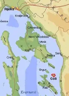 ![]() Location of Goli Otok labor camp and prison within Croatia | |