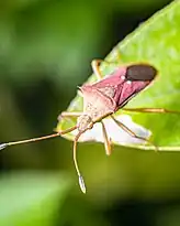 Gonocerus acuteangulatus is a herbivorous species of true bug in the family Coreidae.[1] It is commonly known as the box bug in the UK as it once only occurred in Box Hill in Surrey where it fed on box trees.[2]