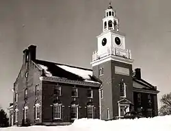 Good Will-Hinckley's campus is located in northeastern Fairfield, on the west side of United States Route 201, on either side of Martin Stream, with what was historically the girls campus on the north side and the boys campus on the south side. The historic core of the campus, some 525 acres (212 ha) that include all of its buildings built between 1889 and 1930,[2] was listed on the National Register of Historic Places in 1987.[1] The campus includes a number of architect-designed residence cottages, spread out along Page Terrace, along with several other architecturally distinguished buildings. The 1897 Moody Chapel was designed by Wilfred E. Mansur of Bangor, Moody School (1905–06) was designed by William R. Miller of Lewiston, and the Prescott Administration building (1916) was designed by New York City architect Edward Josselyn. New York architect Albert Randolph Ross designed by 1906-07 Carnegie Library, built with funding support from Andrew Carnegie. Josselyn also designed the 1919 woodworking shop, and Miller was responsible for the Romanesque Revival building housing the L. C. Bates Museum.[2]
