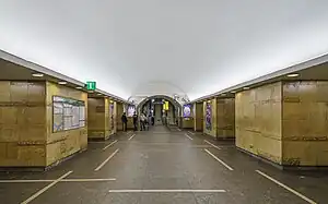 Gorkovskaya (Russian: Го́рьковская) is a station on the Moskovsko-Petrogradskaya Line of the Saint Petersburg Metro. It was designed by A.S. Getskin, V.P. Shuvalova, S.L.Mihaylov, H.I. Bashnin, S.I. Evdokimov, A.P. Izoitko and E.I. Travnikov. It opened on July 1, 1963. The station's name was derived from Maxim Gorky Avenue (later renamed Kronverskiy Avenue). The station was designed as a tribute to the writer.