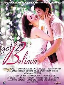 Got 2 Believe is a 2002 Filipino romantic comedy film directed by Olivia Lamasan and starring Claudine Barretto and Rico Yan. The title originated from the song "Got to Believe in Magic" by Charles Fox & Stephen Geyer, covered for the film by the band Side A. Produced by Star Cinema,[1] the film production arm of ABS-CBN Corporation, it was released on February 27, 2002, and became a box office success. This would be Yan's last film before his death in March later that year.