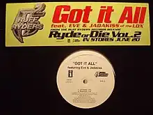 "Got It All" is a song by American hip hop collective and record label Ruff Ryders and the lead single from their second compilation album Ryde or Die Vol. 2 (2000). It features American rappers Eve and Jadakiss. The song was produced by Teflon.