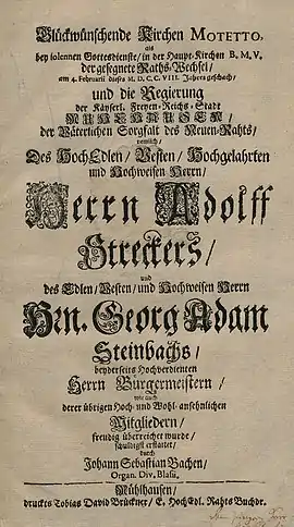 ![]() Title page of the first edition, Bach's only cantata with an extant print | |