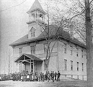 William Bingham II,[5] who came to Bethel from Cleveland for John George Gehring's medical care,[6] was a major school benefactor from the 1930s to his death in 1955 and thereafter via the Bingham Betterment Fund.[2] Since the town of Bethel lacked a public high school, all local children were educated at Gould until 1969, when Telstar High School opened.[2]