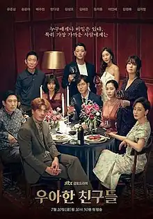 Graceful Friends (Korean: 우아한 친구들; RR: Uahan Chingudeul) is a South Korean television series starring Yoo Jun-sang, Song Yoon-ah, Bae Soo-bin, Han Eun-jung, Kim Sung-oh, Kim Hye-eun, Jung Suk-yong, Lee In-hye, Kim Won-hae and Kim Ji-young. It aired on JTBC from July 10 to September 5, 2020.[1] It's available for streaming on Netflix and Disney+ in selected countries.[2][3]