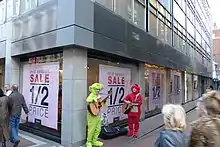 Woolworth's moved to Nos. 65–68 in 1948.[18] The first Irish McDonald's restaurant opened on the street in 1977. This was followed by the opening of a number of other UK high street businesses in the 1980s including HMV, Next, River Island, Miss Selfridge,[11] and Marks & Spencer.[19] In 1987, a major fire broke out on Grafton Street in an employment agency above two shops. The fire quickly spread through the property, causing significant damage and closing the street. Five people were hospitalised for shock and smoke inhalation.[20]