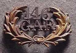 GAR Uniform Hat Badge from Post No. 146, "RG Shaw Post", named after Colonel Robert Gould Shaw and established by surviving members of the 54th Massachusetts Infantry Regiment in 1871 (R. Andre Stevens Civil War Collection)