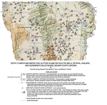 10. 1 2 3 Anning, David W. (2007). Depth to water and water-level altitude in 2006 for selected wells, Detrital, Hualapai, and Sacramento Valley Basins, Mohave County, Arizona—Plate 1 (PDF) (Map). 1:100,000. Cartography by Universal Transverse Mercator. United States Geological Survey. Retrieved December 22, 2008.