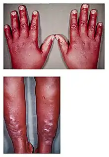 - ↑ Dennis, Mark; Bowen, William Talbot; Cho, Lucy (2012). "Pre-tibial myxoedema (thyroid dermopathy)". Mechanisms of Clinical Signs. Elsevier. p. 550. ISBN 978-0729540759; pbk