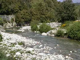 The Gravona is a river on the island of Corsica, France. It flows from the center of the island southwest to the Gulf of Ajaccio. Its entire course is in the Corse-du-Sud Department of France. It is 46.4 km (28.8 mi) long.[2] The Gravona Valley conducts the main highway, Route N193, from the capital city, Ajaccio, to the Col de Vizzavona, where it goes through the pass and down to Corte and Bastia. At its upper end the Gravona is a crystal-clear mountain stream cascading over falls and rapids into trout-filled pools. At its lower end nearly all of the Gravona's flow serves to water the densely urban area of Ajaccio.